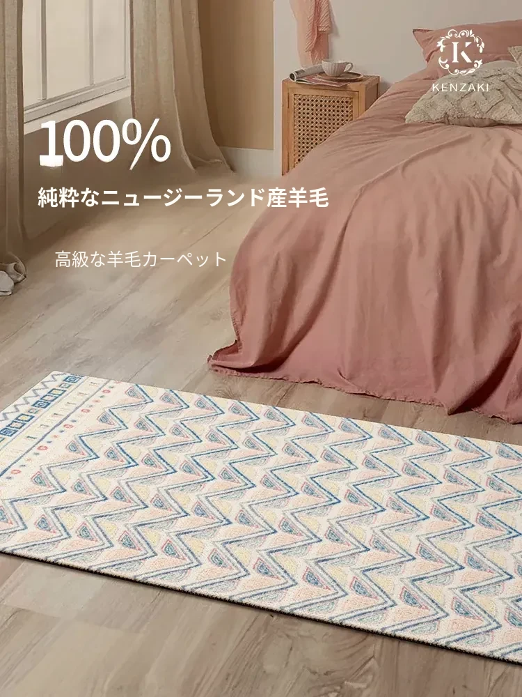 100%ピュアニュージーランドウールラグ|寝室・ベッドサイド・ドレッサー用マット|子供部屋・リビングに最適な軽やかなフレンチヴィンテージスタイル!心地よい肌触りと高級感をあなたの空間に。