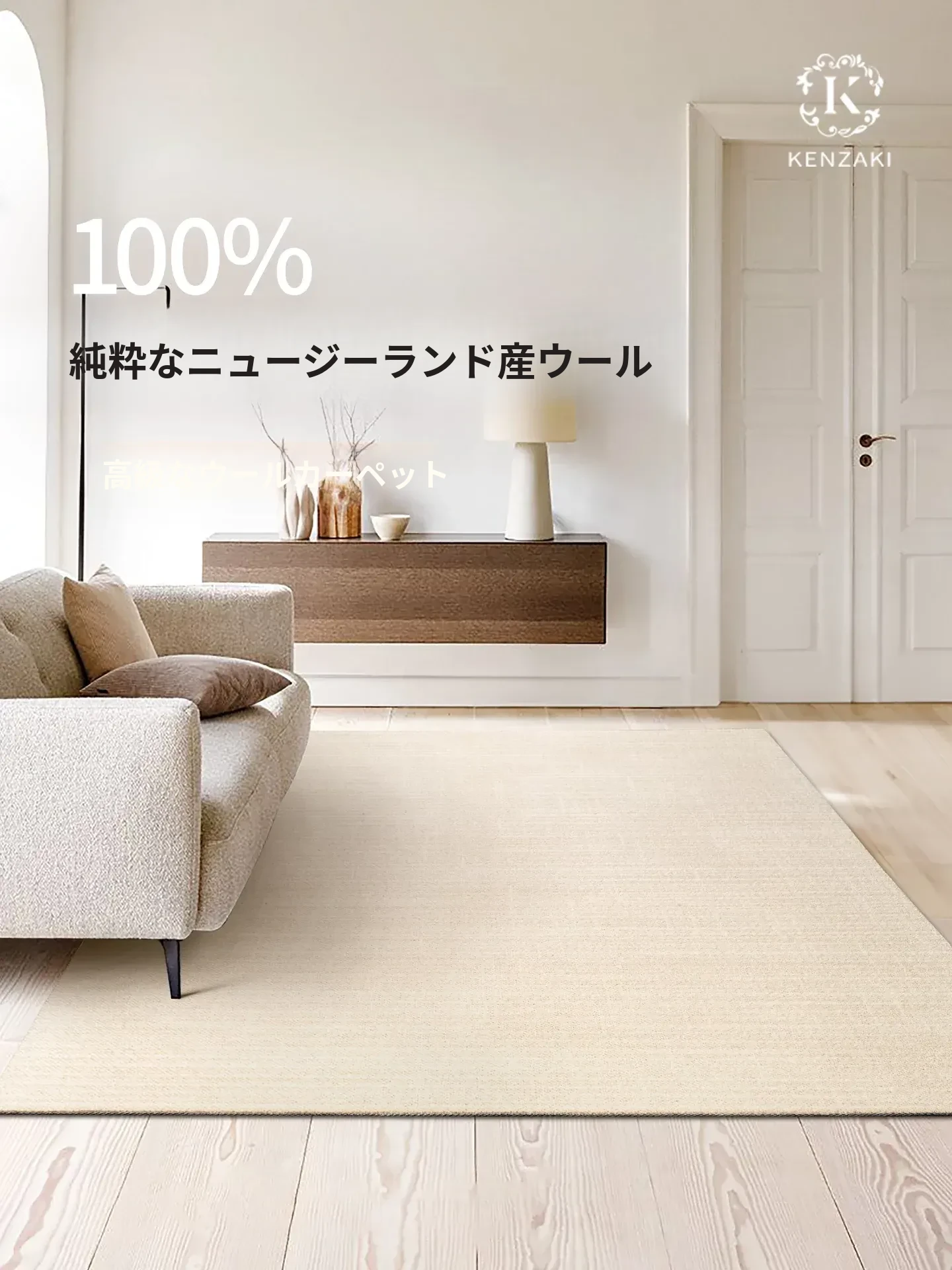 100%ニュージーランドウール使用!リッチで高級感あふれるリビングルーム用カーペット。寝室やソファの横にぴったりなシンプルなデザイン。心地よい肌触りと温かさをお届けします。